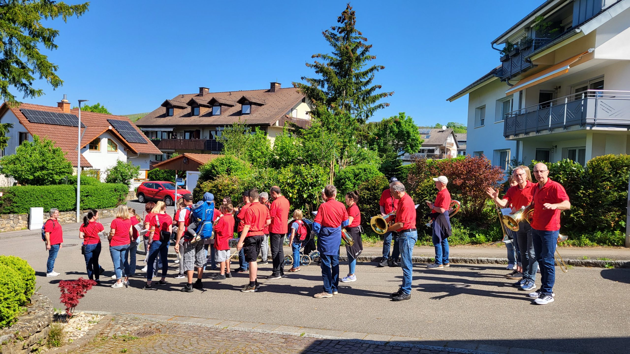 traditionelles Maiwecken mit Marschmusik durchs Dorf